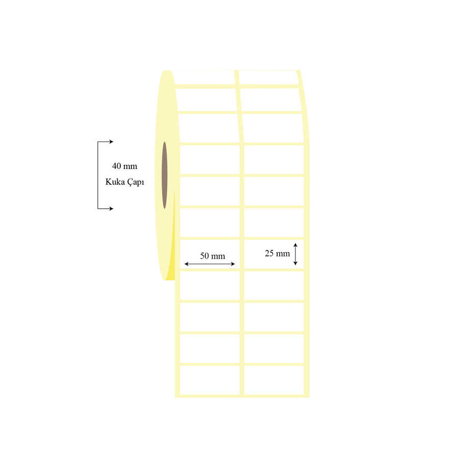 - 50mm x 25mm Pp Opak Etiket akrilik yapışkanlı olan etiket türüdür