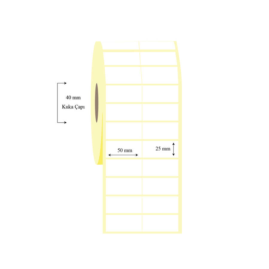 - 50mm x 25mm Pp Opak Etiket akrilik yapışkanlı olan etiket türüdür