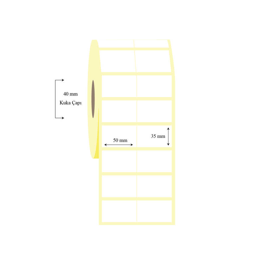- 50mm x 35mm Pp Opak Etiket akrilik yapışkanlı olan etiket türüdür