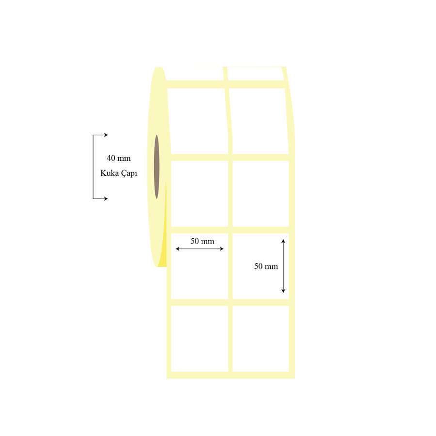 - 50mm x 50mm Kuşe Etiket akrilik yapışkanlı olan etiket türüdür
