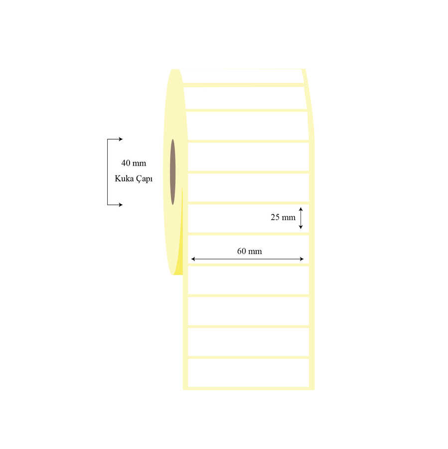 - 60mm x 25mm Pp Opak Etiket akrilik yapışkanlı olan etiket türüdür