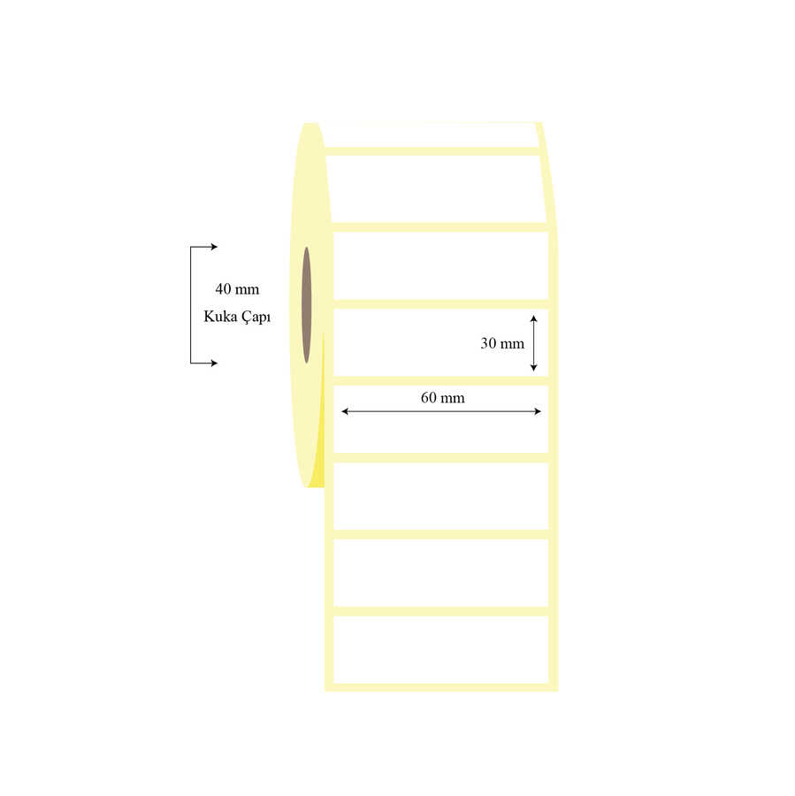 - 60mm x 30mm Pp Opak Etiket akrilik yapışkanlı olan etiket türüdür