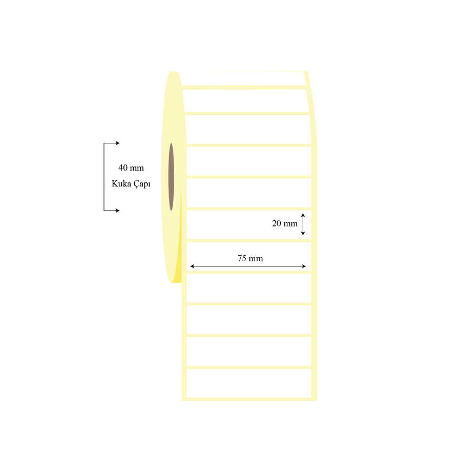 - 75mm x 20mm Pp Opak Etiket akrilik yapışkanlı olan etiket türüdür